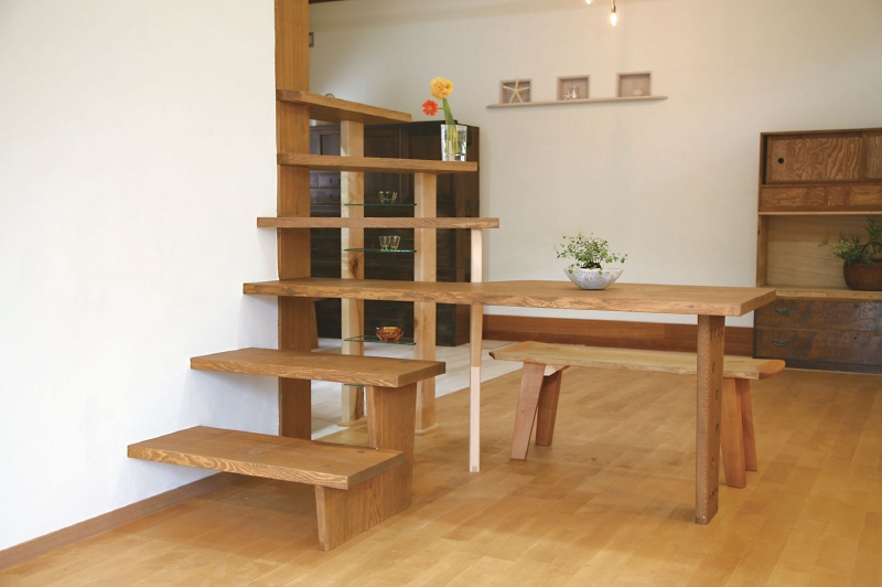 僕自身がこうしたいと思う事を形にしてみました。床は楓の無垢材、窓枠や巾木、回り縁には無垢の木を使用し、できるだけ元の木の質感を生かすために極力素材に近い色で塗装をしています。壁には珪藻土を使いやわらかな雰囲気になっています。